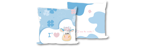 Coussin vache imprimé sur un tissu polyvelours. iDzif vous propose de compléter votre