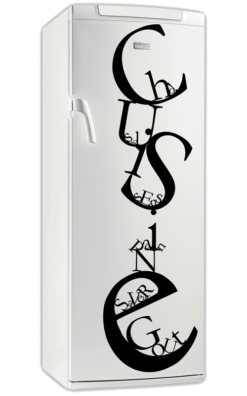 Sticker frigo cuisine. Décoration de frigidaire découpé à la forme dans vinyle de couleur unie, à vous de choisir la couleur qui s'accordera le mieux à votre intérieur de cuisine. Sticker idéal pour rendre son frigo unique et lui donner une touche d'originalité.