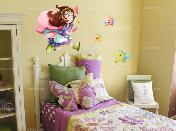 Sticker Fée Amélie imprimé sur adhésif découpé à la forme. Sticker décoratif pour chambre de petite fille réalisé sur mesure. Création Kmiep.