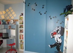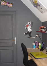 Idée déco Chambre garçon : Découvrez une sélection de photos de nos clients qui ont réalisé des décorations de chambre de garçon avec les stickers muraux iDzif.com. En cliquant sur les photos vous pourrez acheter le sticker en sélectionnant la taille ou la couleur qui correspondra le mieux à votre casse-cou. Les stickers muraux, une bonne idée pour décorer la chambre d'un garçon, les meubles, les placards et toutes les pièces de la maison.