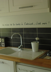 Trouvez parmi les décorations de cuisine présentées ici l'idée déco pour votre cuisine.  Toutes ces décorations ont été réalisées avec des stickers muraux iDzif.com Cliquez sur la photo pour acheter le sticker et choisir la taille ou la couleur qui correspondra le mieux à votre cuisine. Les stickers iDzif.com résistent à l'humidité et à la chaleur. Idéal pour la cuisine mais aussi pour les salles de bain. Vous pouvez ainsi décorer toute la maison avec des stickers : les chambres d'enfants, d'adultes, les WC, le frigo et les meubles, les portes mais aussi les carrelages et les faïences.