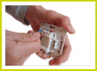 Glissez les fils dans les bornes situées à l'arrière de l'interrupteur décoré en appuyant sur les poussoirs qui y sont associés.