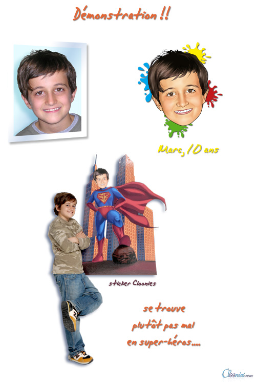 Le monde des Cloonies est sur iDzif.com : D'après la photo de votre enfant, découvrez un sticker à ses traits dans la peau d'un personnage de bande dessinée ou d'un super héros ! iDzif.com réalise votre sticker, d'après une simple photo. Pour les filles, les garçons mais aussi les bébés, vous pourrez choisir parmi différents modèles de stickers personnalisables.