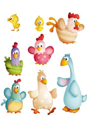 Stickers Basse-cour. Stickers imprimés sur adhésifs découpés à la forme. Les animaux de la ferme, des stickers pour décorer la chambre de vos enfants d'une manière différente. Création Kmiep.