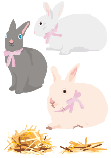 planche de 56 x 80 cm comprenant trois lapins de format unitaire moyen 40 x 29 cm et deux bottes de foin de format unitaire moye