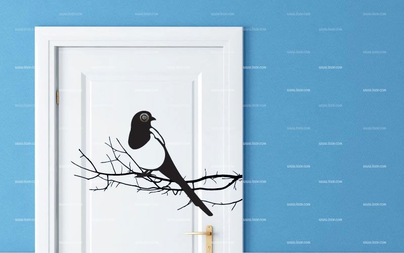 Ce stickers pie vous permettra de décorer la porte de votre appartement ou maison en créant un trompe-l'oeil original. Ce stickers oeilleton de porte camouflera le judas de porte tout en décorant sur le thème des oiseaux. Ce stickers sera fabriqué dans notre atelier, en France. Découpé à la forme dans un support vinyle adhésif, vous pourrez choisir ce stickers pie de la couleur de votre choix, parmi 22 coloris différents et plusieurs finitions (mate, brillante). Création Ludivine Anadon